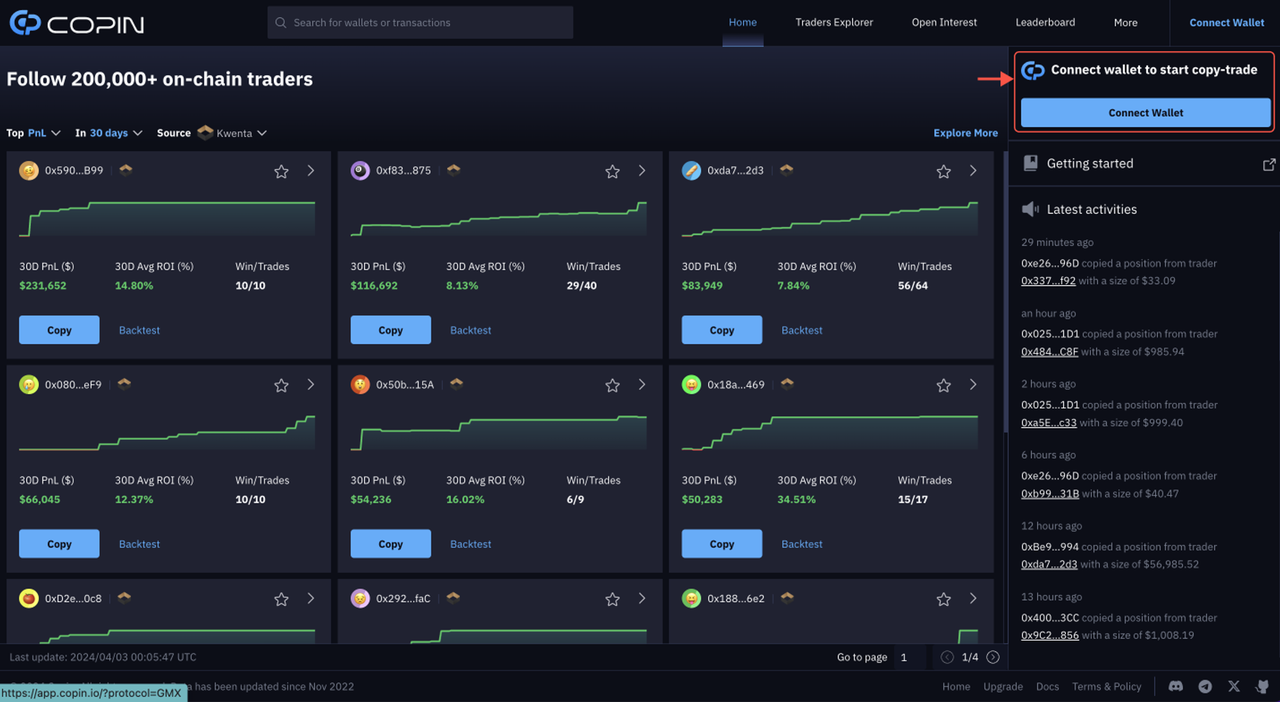 To begin using hybrid copy trading on Copin, you'll follow six simple steps. If you're already familiar with any of these steps or have completed them, feel free to skip ahead to the next one.